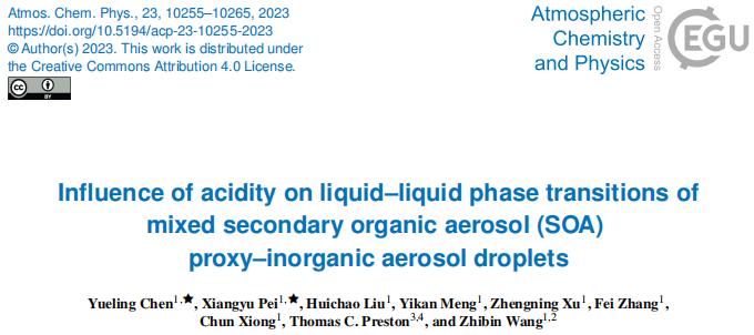分享一篇來自浙江大學(xué)裴祥宇團(tuán)隊(duì)的新研究成果,本文以“Influence of acidity on liquid−liquid phase transitions of mixed SOA proxy–inorganic aerosol droplets”為題發(fā)表于期刊Atmospheric Chemistry and Physics,原文鏈接:doi.org/10.5194/egusphere-2023-692 浙江大學(xué)裴祥宇老師為共同第一作者。希望對您的科學(xué)研究或工業(yè)生產(chǎn)帶來一些靈感和啟發(fā)。