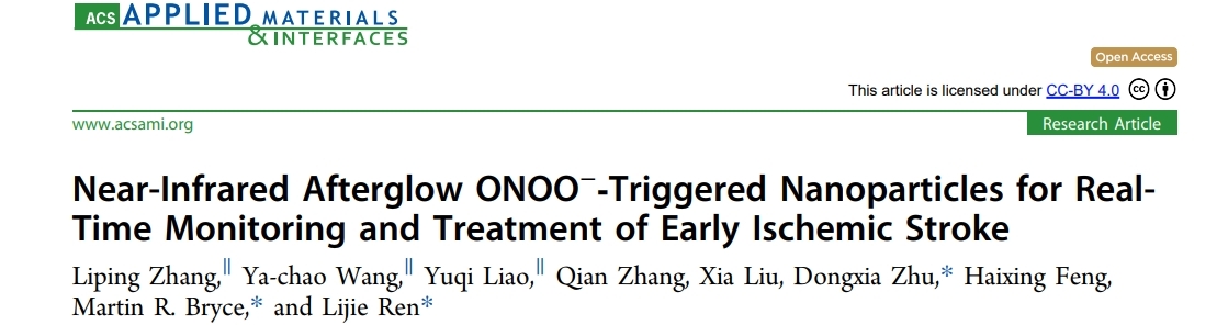 近日,來自深圳第二人民醫(yī)院的張麗蘋老師課題組在國際知名期刊《Applied Materials & Interfaces》上發(fā)表了題為“Near-Infrared Afterglow ONOO−?Triggered Nanoparticles for Real-Time Monitoring and Treatment of Early Ischemic Stroke”的文章,首次報(bào)道了一種通過NIR余輝開啟和激活,并用于IS協(xié)同治療的前體藥物。