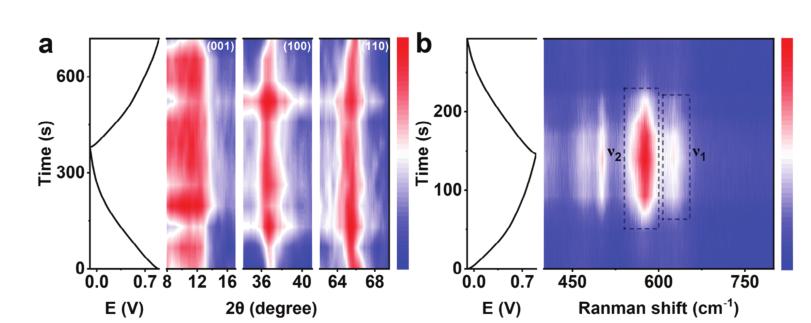 圖4. 原位測(cè)試XRD譜和拉曼光譜圖