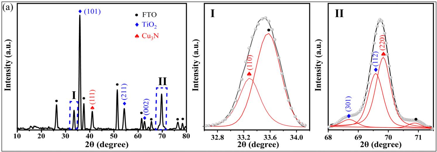 圖2. TiO2/Cu3N樣品的X射線衍射圖譜(XRD)。