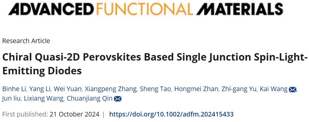近日,長春應(yīng)化所秦川江研員團隊在手性準(zhǔn)二維發(fā)光二極管方面取得重要進展,研究成果以“Chiral quasi-2D perovskites based single junction spin-light-emitting diodes”為題發(fā)表在國際**期刊Advanced Functional Materials 上。長春應(yīng)用化學(xué)研究所為該論文第一單位,李彬和博士為第一作者,秦川江研究員、王愷教授為共同通訊作者。今天小卓為大家分享該研究成果,希望對您的科學(xué)研究或工業(yè)生產(chǎn)帶來一些靈感和啟發(fā)。
