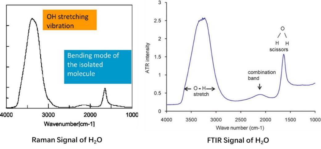 物質(zhì)紅外光譜的產(chǎn)生是由于化學(xué)鍵的振動能級和外紅光的能量相同,發(fā)生了共振吸收,從而發(fā)生能級躍遷。那么只要振動能級與紅外光子的能量相同就可以發(fā)生共振吸收么?事實(shí)上,還需要滿足電偶極矩的變化。例如,考慮一對稱的非極性分子的對稱振動模式,總電偶極距在發(fā)生振動前后都為零,因此不會對紅外有吸收。與之差別的是拉曼光譜,對于非極性分子的對稱振動,由于外電磁場下分子集體產(chǎn)生宏觀極化率,雖然沒有紅外吸收信號,但是存在拉曼散射信號。而對于極性分子,可能在振動前后同時存在瞬間偶極矩和極化率的變化,因此可能同時存在紅外吸收信號和拉曼散射信號。