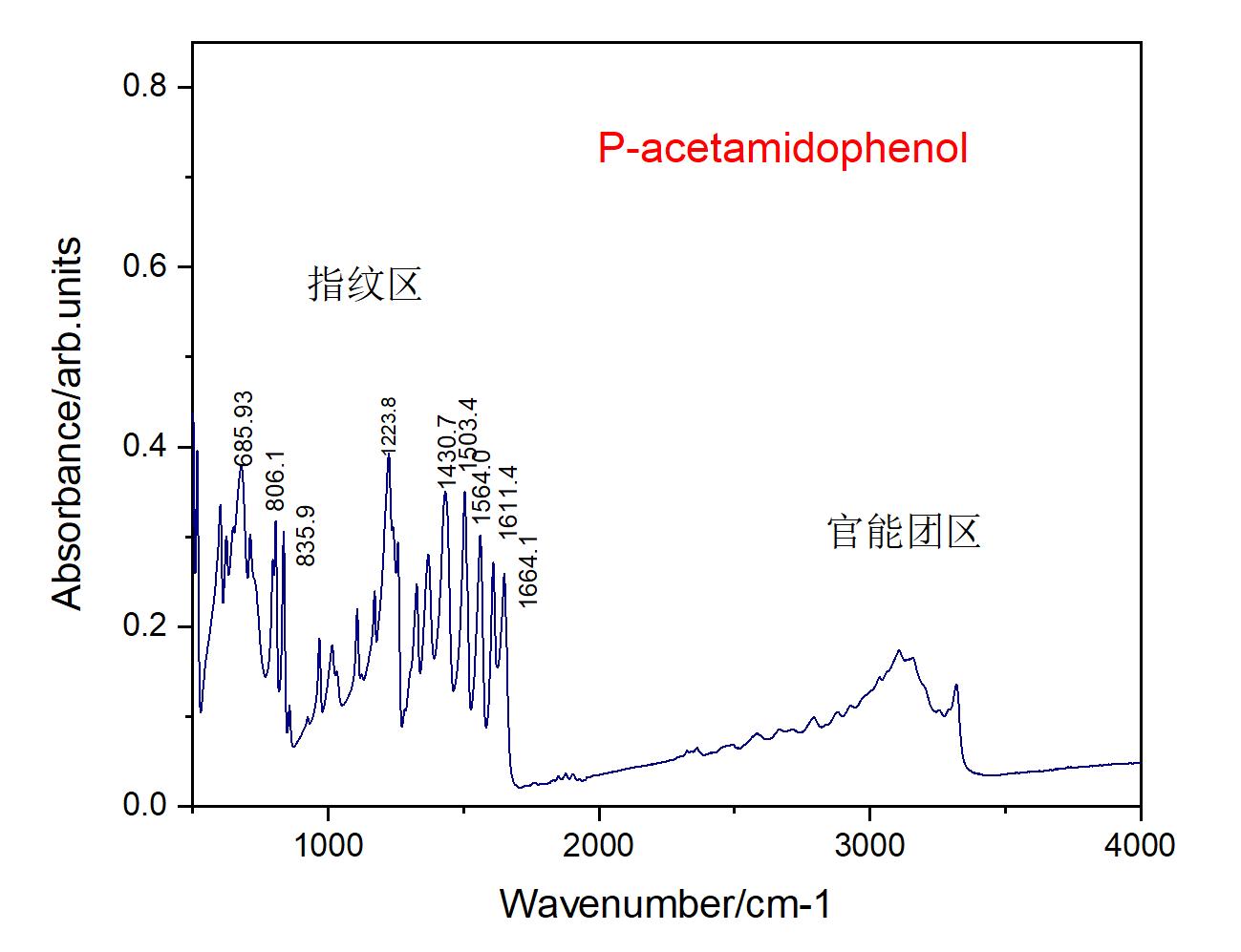 圖8 Zolix FI-RXF100傅里葉變換光譜儀測量對乙酰氨基苯酚(P-acetamidophenol)紅外光譜圖(包括官能團(tuán)區(qū)和指紋區(qū))