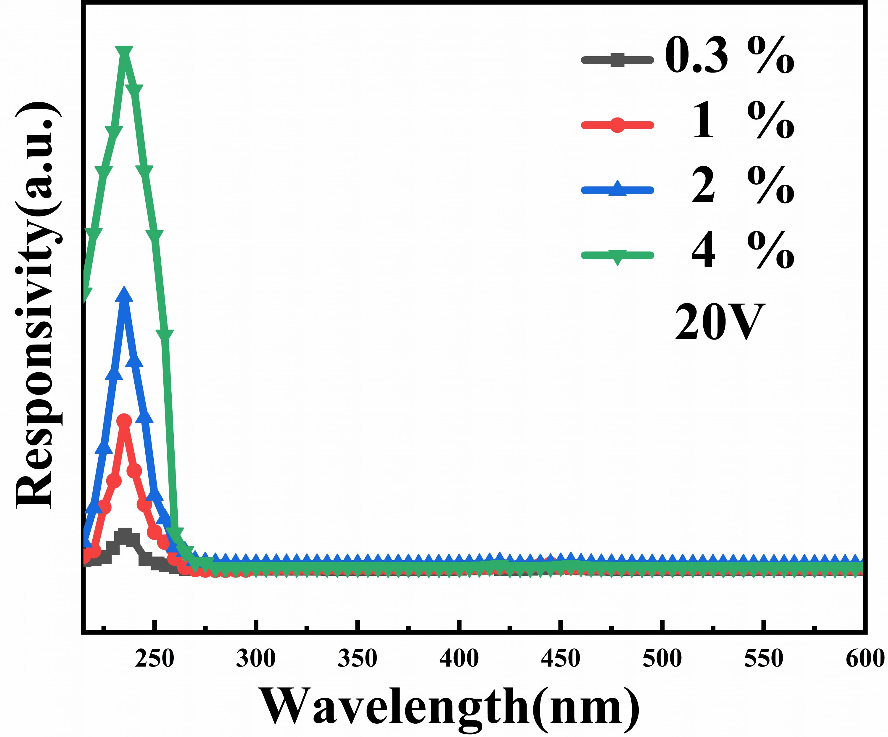 圖4. α-Ga2O3光電探測(cè)器在不同Si/Ga原子比例下的光譜響應(yīng)度。