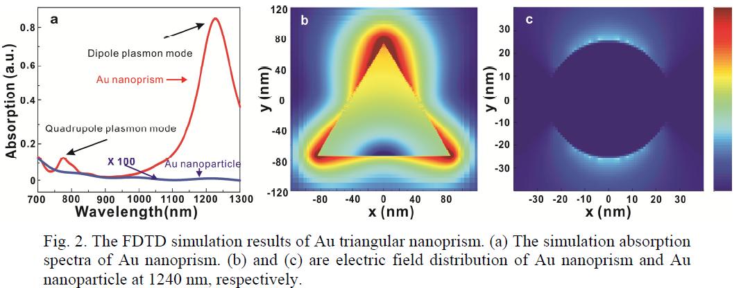 金三角納米棱柱在1240 nm波長處產(chǎn)生強偶極等離子體共振,尖端電場增強超55倍,局部態(tài)密度(LDOS)提升千倍,為非線性效應(yīng)提供“能量引擎”。