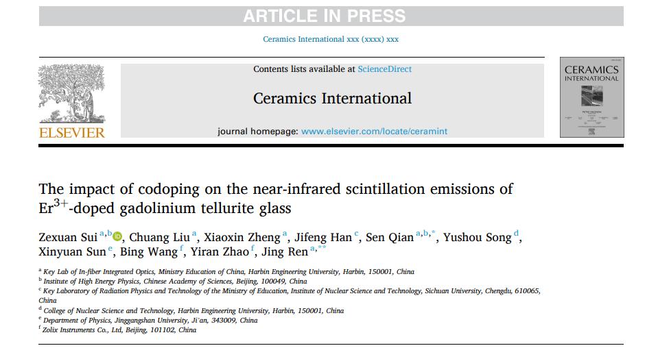 近日,哈爾濱工程大學任晶教授團隊在近紅外閃爍玻璃領域取得重要進展。研究成果以“The impact of codoping on the near-infrared scintillation emissions of Er3+-doped gadolinium tellurite glass”為題發(fā)表在國際知名期刊《Ceramics International》上。哈爾濱工程大學為該論文第一單位,任晶教授/錢森研究員為共同通訊作者。今天小卓為大家分享該研究成果,希望對您的科學研究或工業(yè)應用帶來一些靈感和啟發(fā)。