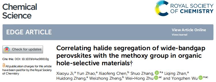 分享一篇來自華東理工大學(xué)吳永真團(tuán)隊的新研究成果,本文以“Correlating halide segregation of wide-bandgap perovskites with the methoxy group in organic hole-selective materials”為題發(fā)表于期刊Chemical Science,原文鏈接:https://doi.org/10.1039/d4sc08810g。希望對您的科學(xué)研究或工業(yè)生產(chǎn)帶來一些靈感和啟發(fā)。