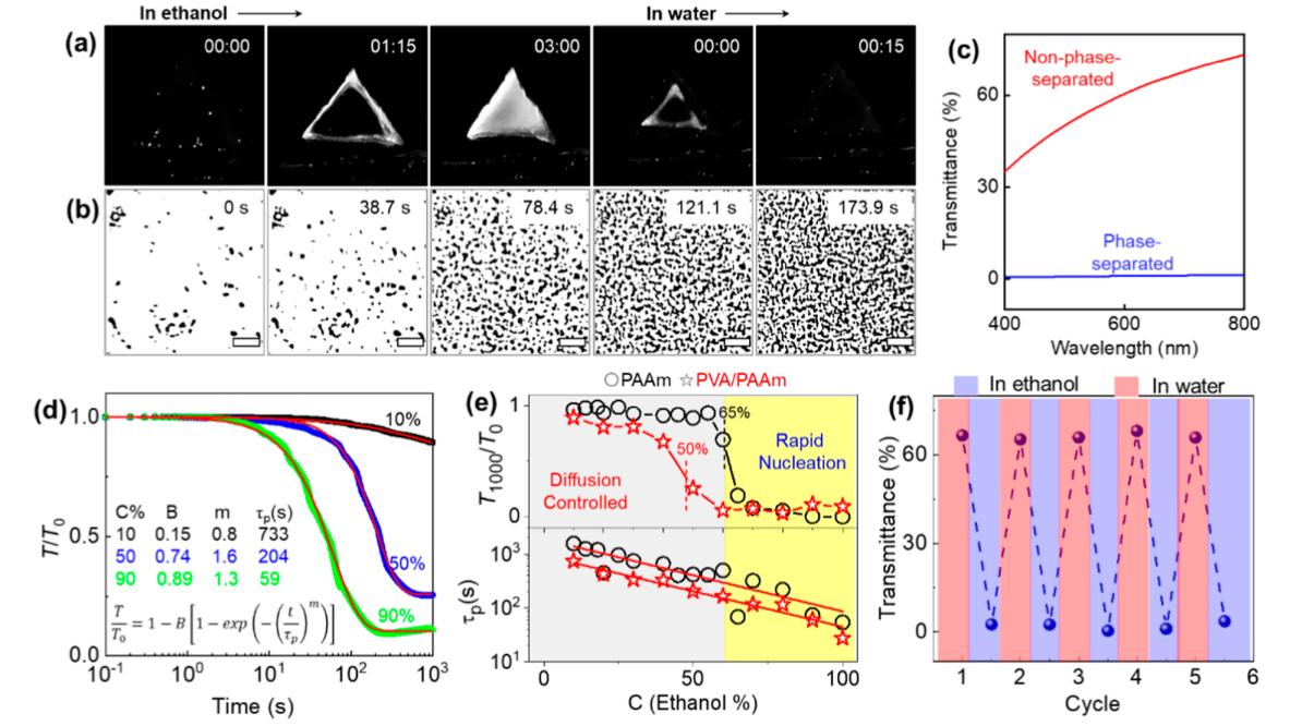 圖1. NIPS驅(qū)動(dòng)智能水凝膠實(shí)現(xiàn)透射/熒光/衍射多模態(tài)光學(xué)調(diào)控