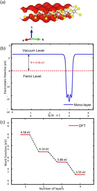 圖12 (a) PtS2表面的靜電勢(shì)分布 (b)單層PtS2的靜電勢(shì)和功函數(shù) (c)不同層間PtS2的功函數(shù)變化