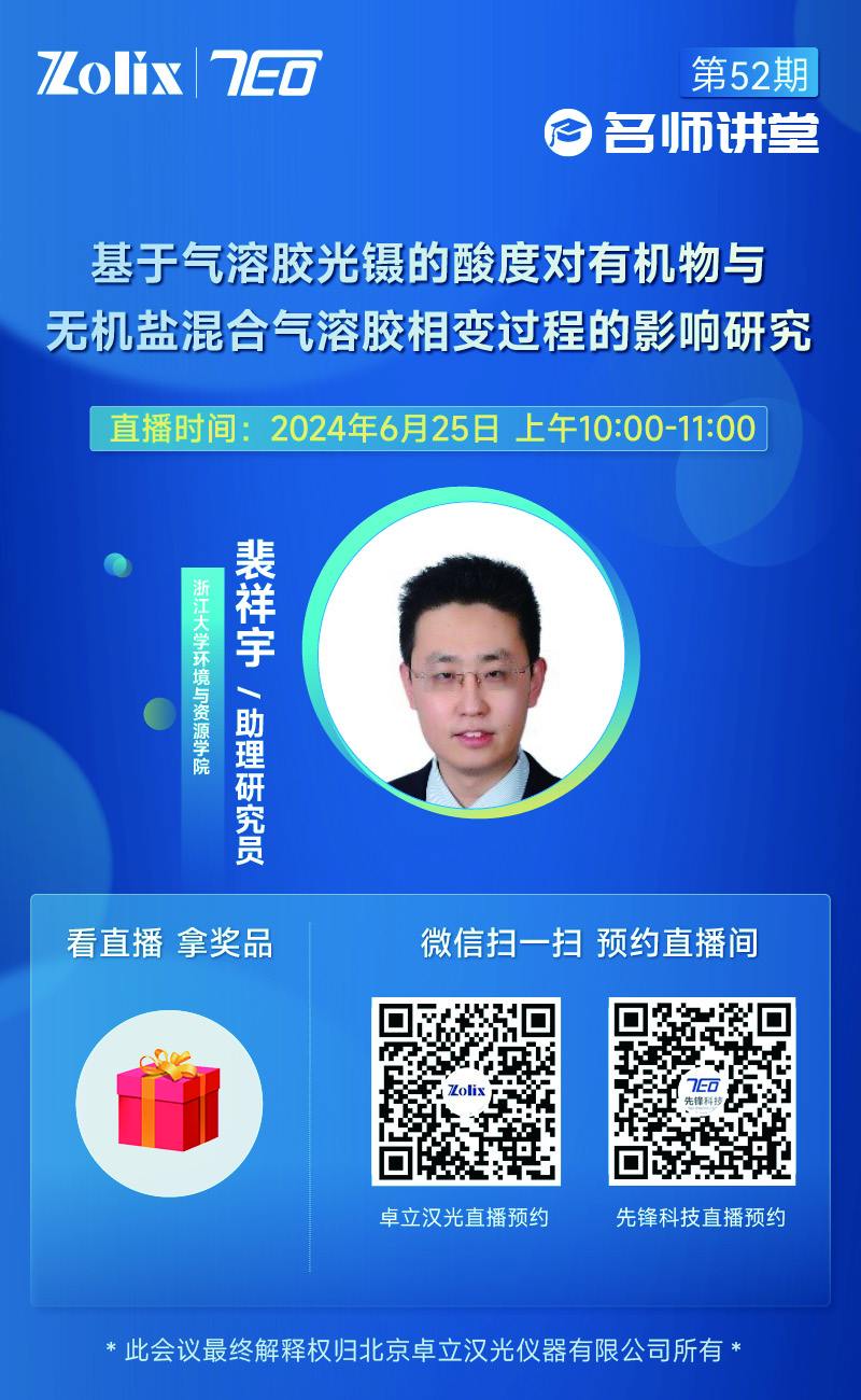 直播預(yù)約6月25日上午10:00—11:00,浙江大學(xué)環(huán)境與資源學(xué)院助理研究員—裴祥宇為大家?guī)?lái)講座《基于氣溶膠光鑷的酸度對(duì)有機(jī)物與無(wú)機(jī)鹽混合氣溶膠相變過(guò)程的影響研究》。直播期間更有豐富好禮相送,歡迎屆時(shí)參加!
