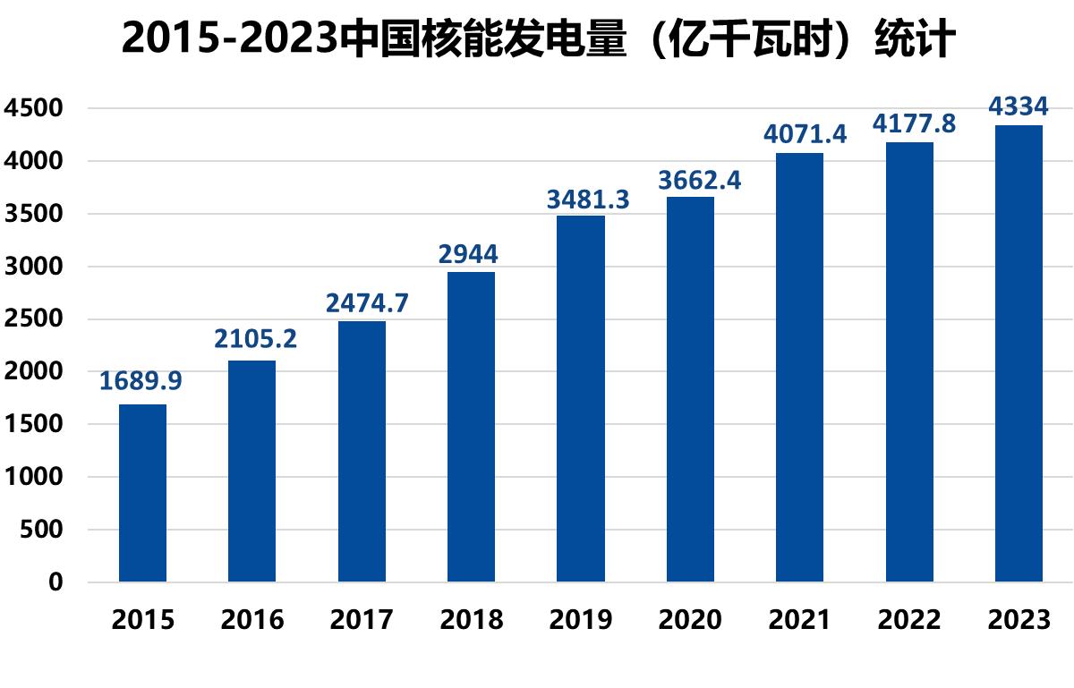 圖1. 2015-2023中國(guó)核能發(fā)電量統(tǒng)計(jì)[3]