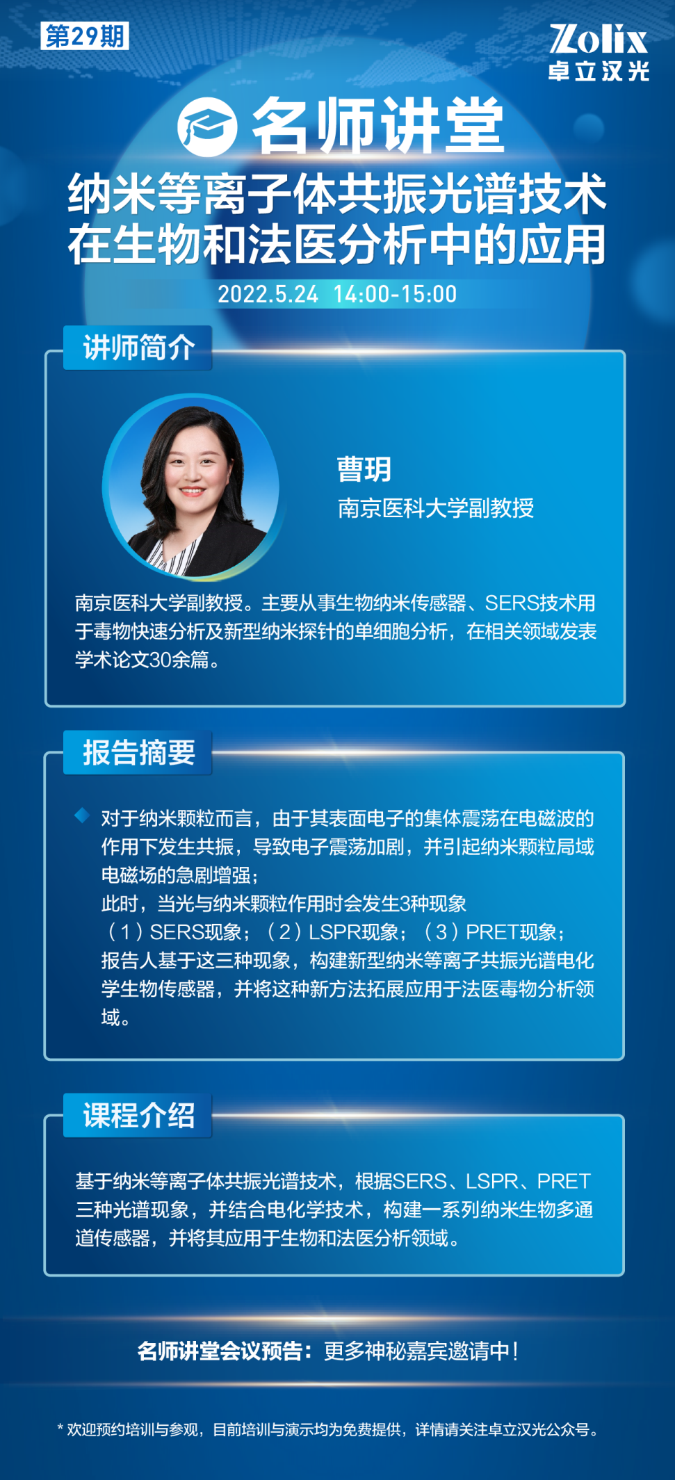 講師簡介:曹玥,南京醫(yī)科大學(xué)副教授。主要從事生物納米傳感器、SERS技術(shù)用于毒物快速分析及新型納米探針的單細(xì)胞分析,在相關(guān)領(lǐng)域發(fā)表學(xué)術(shù)論文30余篇。