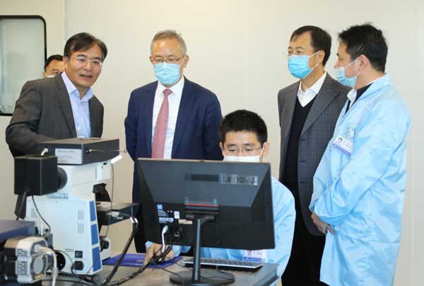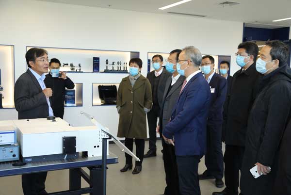 儀式結束后,懷柔區(qū)委書記、懷柔科學城黨工委書記戴彬彬和有研科技集團有限公司董事長趙曉晨等領導及專家一行26人,蒞臨北京卓立漢光分析儀器有限公司參觀指導,并詳細了解公司項目實施進度及中長期發(fā)展規(guī)劃。北京卓立漢光儀器有限公司董事長、總經理丁良成向到場的領導和專家,著重介紹了公司的研發(fā)生產現狀、優(yōu)勢產品市場及重點應用發(fā)展方向。