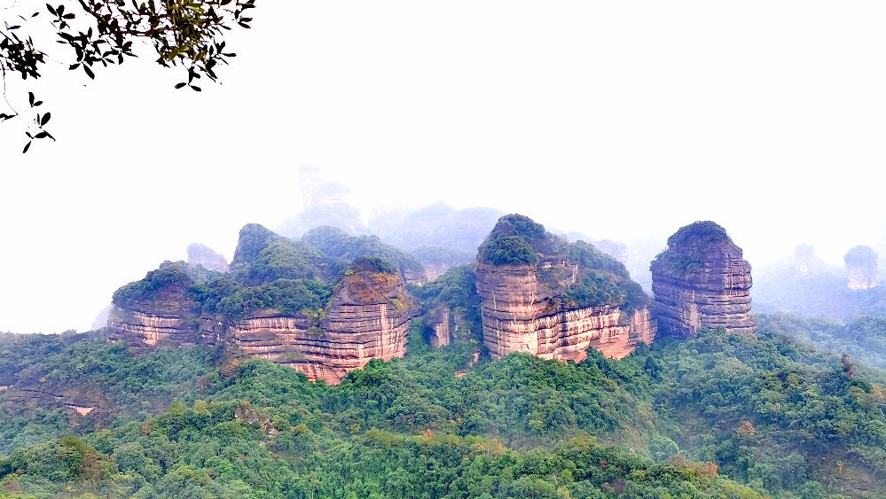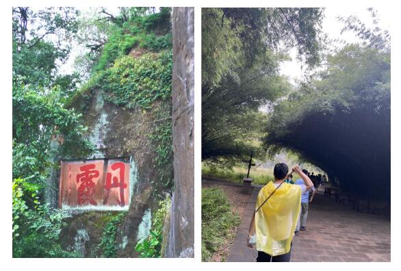 丹霞山精華的部分匯集在這里,從山腳到山頂,一步一景,人文風(fēng)貌與自然觀景相結(jié)合。下著雨,讓原本陡峭的山路更添濕滑,我們手拉手好似拴在一起,一點(diǎn)點(diǎn)往下挪,這就是團(tuán)隊(duì)的力量。