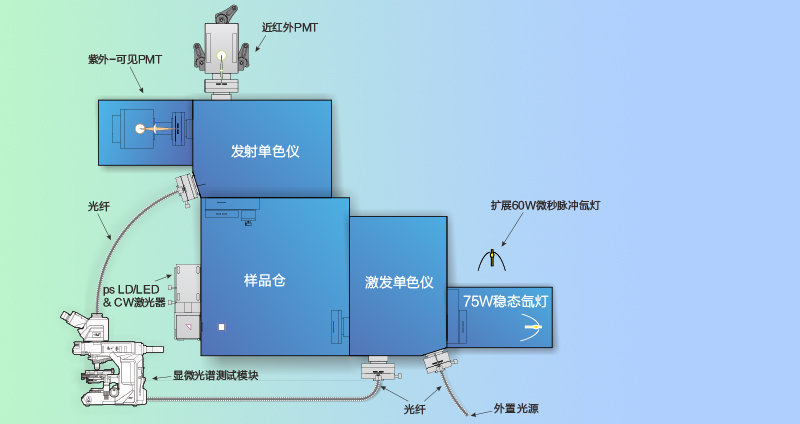 3、豐富的擴(kuò)展性:跨越百皮秒到秒級(jí)別的時(shí)間分辨光譜測(cè)量,可升級(jí)高低溫、近中紅外、