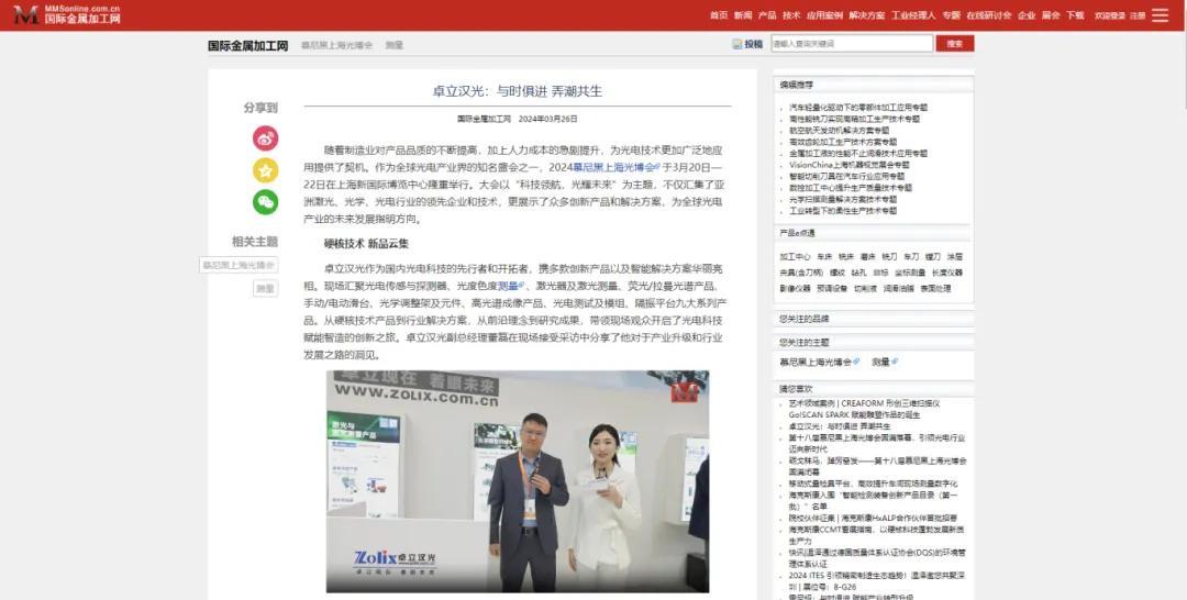 近日,卓立漢光副總經(jīng)理董磊在慕尼黑上海光博會現(xiàn)場接受了國際金屬加工網(wǎng)采訪。采訪現(xiàn)場,董總分享了對于產(chǎn)業(yè)升級和行業(yè)發(fā)展之路的洞見。一起來看看具體報道如何吧~