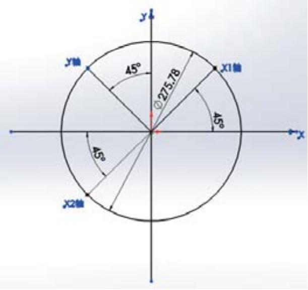 我們先建立直角坐標(biāo)系,將三軸軸承中心坐標(biāo)點(diǎn)在圓周上表示出來(lái):