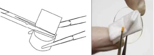 ?清潔時的夾持 :由于清潔光學(xué)元件時,常用有機(jī)溶劑,應(yīng)盡量避免手( 即使是戴手套或指套 ) 接觸有機(jī)溶劑和元件。我們推薦用鑷子等工具來夾持光學(xué)元件,但最好使用木制、塑料等材質(zhì)較軟的鑷子。如果要使用金屬鑷子,也請在鑷子前端套上軟性保護(hù)材料,以免損傷光學(xué)元件表面。