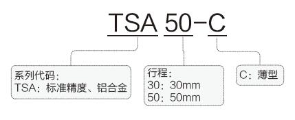 薄型電動直線滑臺TSAxx-C系列命名規(guī)則: