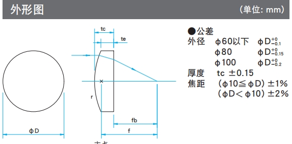 ?球面平凸透鏡有色差,焦距隨波長變化。各波長的焦距請參考網(wǎng)頁上的焦距隨波長變化特性數(shù)據(jù)”確認(rèn)。
