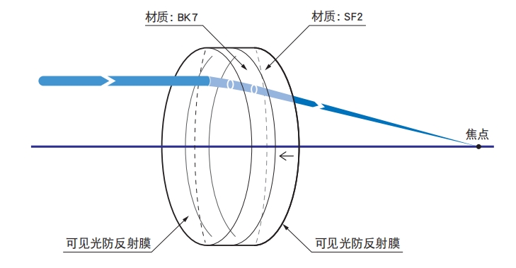 ?通過優(yōu)化透鏡設(shè)計(jì),在整個可見光譜區(qū)焦距幾乎不變。