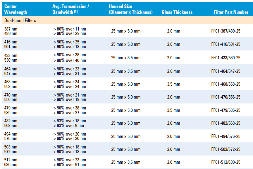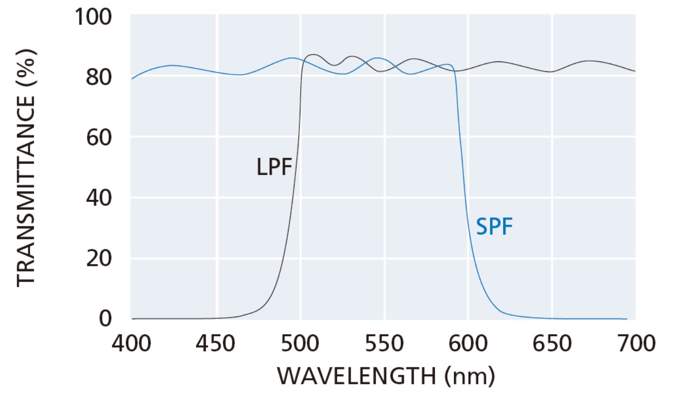 帶通濾光片(Bandpass Filter) 與截止濾光片(Cutoff Filter) 往往指的是同一類產(chǎn)品,比如說短波截止濾光片(Short Wave Cutoff Filter) 與長(zhǎng)波通濾光片(Long Wave Pass Filter) 是同一產(chǎn)品但說法不同而已。同樣地,長(zhǎng)波截止濾光片與短波通濾光片指的也是同一種產(chǎn)品。我們習(xí)慣上,更常用長(zhǎng)波通(LP) 和短波通(SP) 來區(qū)分。