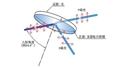 ?平板型偏光分光鏡的反面沒有鍍防反射膜。(以布魯斯特角入射P偏光反射率為0%)