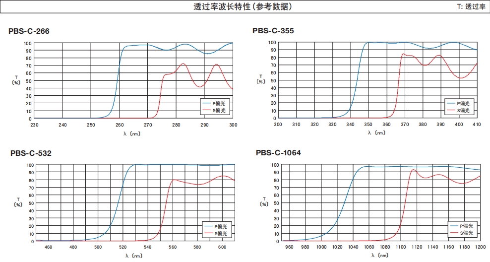 ?在適用波長之外使用時,不會得到應有的偏光分光鏡的特性。請選擇與使用波長相符的元件。