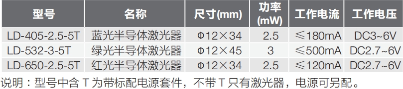 波長(zhǎng)包括: 405nm、532nm、650nm
