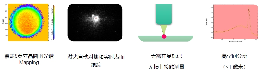 •可對光譜峰位、峰高、半高寬等進(jìn)行擬合。 •可計(jì)算熒光壽命、薄膜厚度、翹曲度等。
