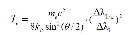 湯姆遜散射角度 Theta=90度;me是電子質(zhì)量,c是光速,kB是玻爾茲曼常數(shù),公式右邊分母下面:是激光的波長 532nm;分子是譜線展寬,不過是1/e展寬