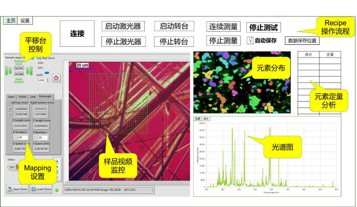 基于激光和視覺(jué)算法的自動(dòng)對(duì)焦系統(tǒng),對(duì)樣品表面實(shí)時(shí)跟蹤實(shí)現(xiàn)LIBS的自動(dòng)跟焦和Mapping。
