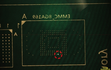 圖4綠色激發(fā)光來焦到EMMC BGA169封裝的電極點(diǎn)陣的顯微照片