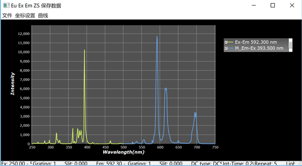 激發(fā)波長:393.5nm@ 微秒脈沖氙燈 發(fā)射波長:592.3nm