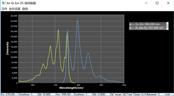 激發(fā)光譜測試:激發(fā)掃描:270nm-395nm,