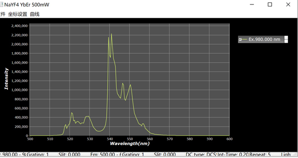 激發(fā)光源:980nm 連續(xù)激光器 發(fā)射掃描:500nm-600nm