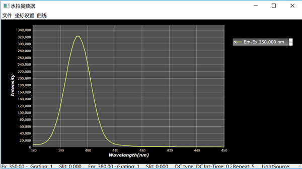 樣品:純水 激發(fā)波長:350nm 掃描步長:1nm 發(fā)射掃描:380nm-450nm 積分時間:1s Peak Signal@397nm=322411 Noise Signal@450nm=680 ![]() |