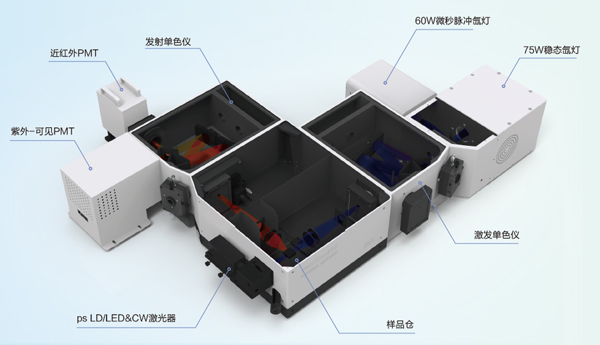 本系列熒光光譜儀,可搭配顯微光路實現(xiàn)顯微光譜測試,另可搭配牛津儀器(Oxford Instruments)公司的溫控單元及濱松(Hamamatsu)公司的各類高靈敏度探測器,實現(xiàn)顯微(高空間分辨)、寬波段、變溫測試等多個維度的光譜測量,對于研究樣品組分、分析發(fā)光動力學、理論研究提供保障。
