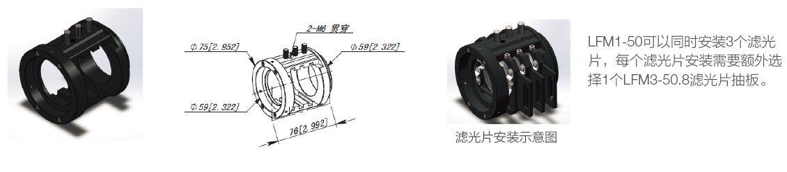 開放式,最多可安裝3塊濾光片,需要額外配置LFM3-50.8 |