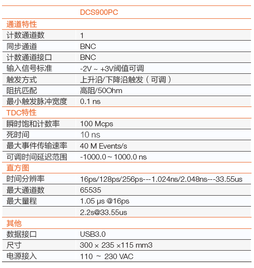DCS900PC 時間相關(guān)單光子計數(shù)系統(tǒng)參數(shù)