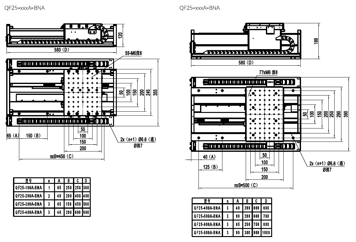 QF 系列代碼: QF:單軸空氣軸承類滑臺(tái) QFD:XY組合空氣軸承類滑臺(tái) QFH:龍門組合空氣軸承類滑臺(tái) |