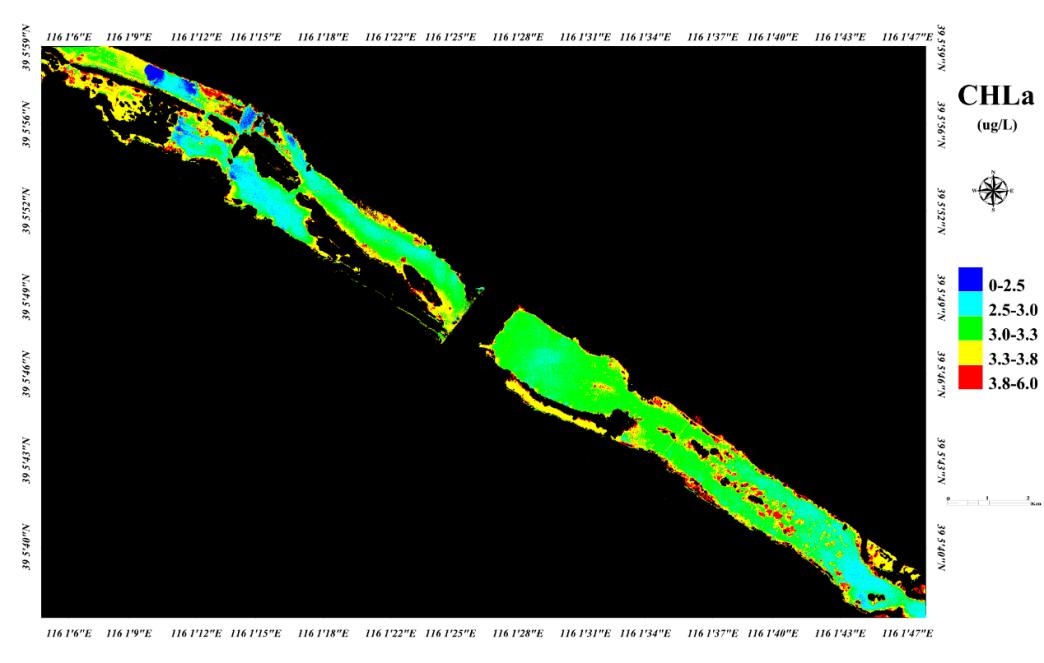 Fig. 5 Inversion map of hyperspectral chlorophyll a of Daqing river UAV