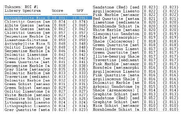 Using the Spectral Angle Mapping (SAM) method, the match to the Popper library is measured by the radian, with the keyed minimum and maximum values being reflected in radians.