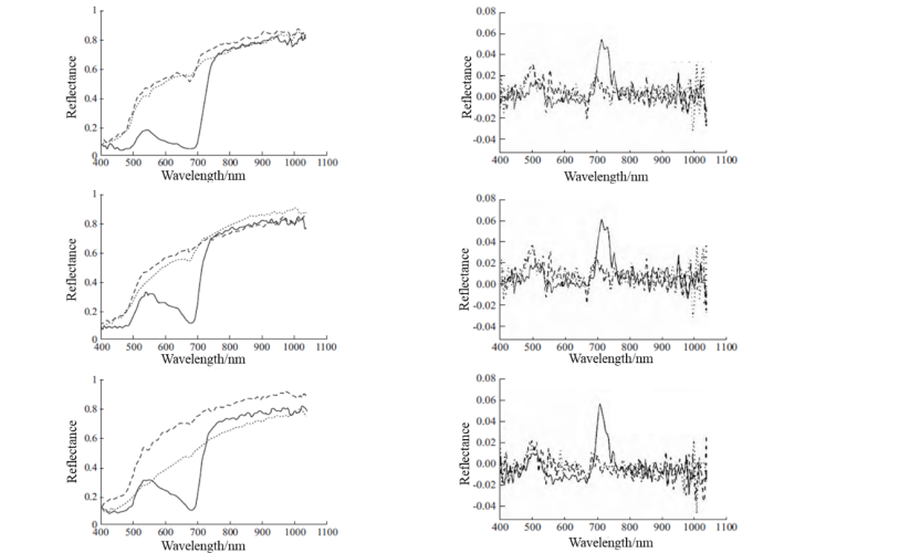 The chlorophyll content was determined spectrophotometrically. Tobacco leaves that had been spectroscopically determined were taken back to the laboratory, dried and crushed, and three replicates of each sample were taken as the average of the chlorophyll and carotenoid values.