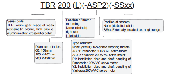 Standard TBR series products employ worm gear/worm with higher transmission ratio which result in higher meshing accuracy but slower rotation speed. TBRF version is faster than standard TBR series by using a set of worm gear/worm which has smaller transmission ratio to guarantee higher rotation speed. TBRF series has higher rigidity and rotates faster with relative lower meshing accuracy. This is a family of products to be used in applications which require higher speed, higher wear-resistant performance but lower operation speed.