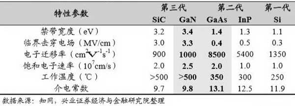 典型半導(dǎo)體材料特性參數(shù)對(duì)比