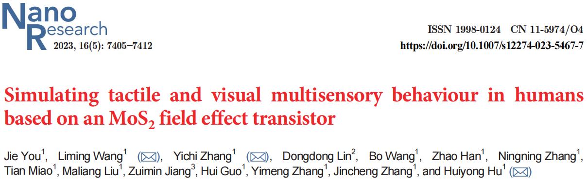 分享一篇來自西安電子科技大學(xué)王利明課題組的新研究成果,本文以“Simulating tactile and visual multisensory behaviour in humans based on an MoS2 field effect transistor”為題發(fā)表于期刊Nano Research,原文鏈接:doi.org/10.1007/s12274-023-5467-7。希望對(duì)您的科學(xué)研究或工業(yè)生產(chǎn)帶來一些靈感和啟發(fā)。