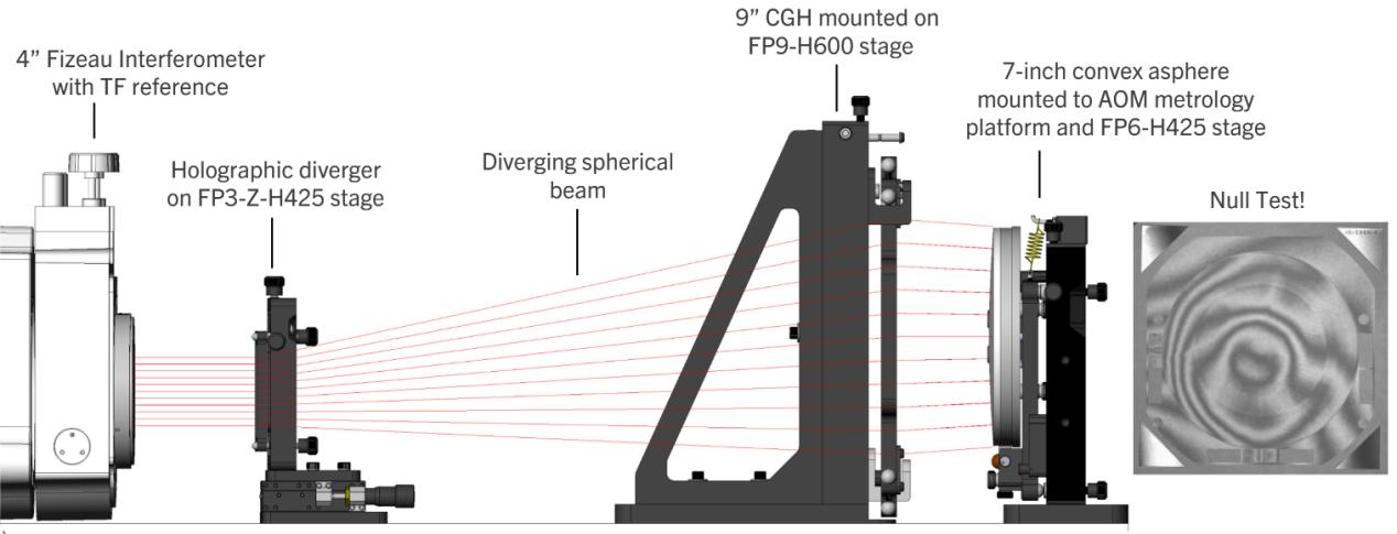 航空相機(jī)鏡頭的組裝中,因?yàn)樯婕暗降墓鈱W(xué)元件尺寸往往較大較重,且材料、面型、封裝方式等基于光學(xué)設(shè)計(jì),要求各不相同。并且考慮到實(shí)際使用時的復(fù)雜環(huán)境,所以對各個光學(xué)元件的標(biāo)定測試有著極高的要求,一種常用的方式是基于干涉檢測計(jì)算全息圖(CGH),實(shí)現(xiàn)對柱面光學(xué)器件的干涉檢測。