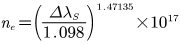 在計(jì)算得到高斯線寬的基礎(chǔ)上,對實(shí)驗(yàn)測量得到的Hα譜線進(jìn)行反卷積,得到洛倫茲展寬,減去范德瓦爾斯展寬后即得到斯塔克展寬。利用式(5)可得到等離子體電子密度[8-9]:
