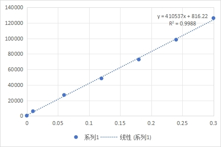 為了確認(rèn)標(biāo)準(zhǔn)中所提及標(biāo)準(zhǔn)溶液線性相關(guān)度,我們制備了0.00 mg/L、0.06 mg/L、0.12 mg/L、0.18 mg/L、0.24 mg/L、0.30 mg/L 的L-色氨酸溶液,在激發(fā)波長/發(fā)射波長(Ex/Em)為275/350 nm處進(jìn)行標(biāo)準(zhǔn)曲線繪制。圖5為使用SmartFluo-Pro繪制的熒光標(biāo)準(zhǔn)曲線,可以看到曲線的擬合系數(shù)R2達(dá)到了0.9988,具有優(yōu)異的線性相關(guān)度,滿足HJ1407-2024關(guān)于標(biāo)準(zhǔn)曲線擬合相關(guān)系數(shù)應(yīng)滿足R2≥0.99的要求。